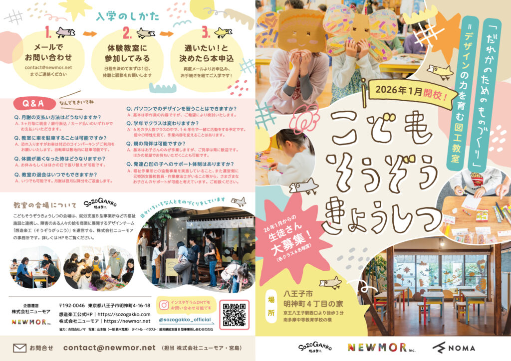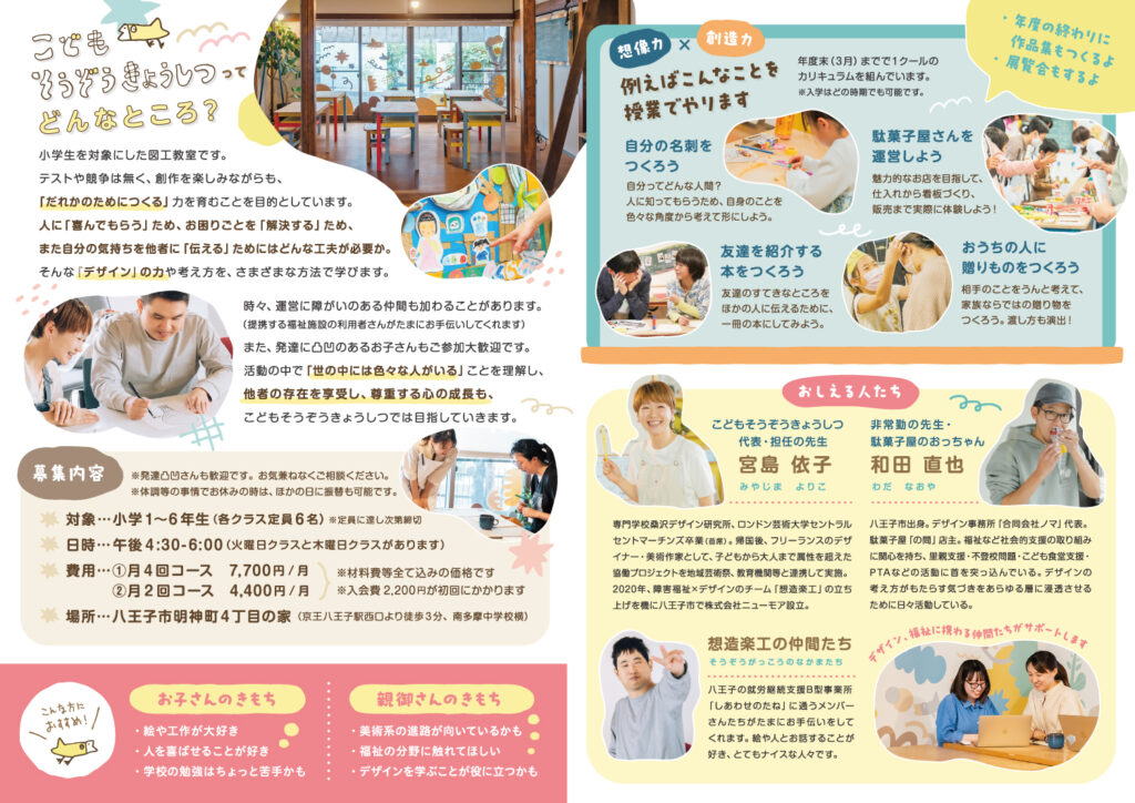 自由に創作を楽しみながらも、『だれかのためのものづくり=デザイン』の力を育むことを目的とした教室です。